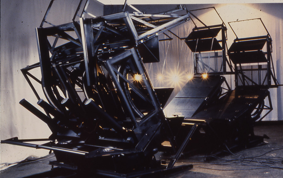 All this action is accomplished in the most low-tech manner, though, with bolts and thumbscrews. this keeps down the costs and increases convenience. These units, like the wall/ceiling modules, are also composed of a skin and a subframe. For both the fixture and the wall/ceiling unit, the frame is the universal element, while the skins can vary within certain dimensional constraints.