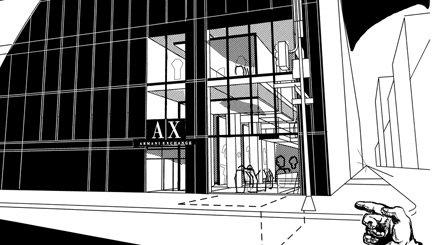 There are two edges in any retail environment that can carry information. The vertical edge we usually call a wall, and the horizontal one we call the ceiling or floor. In keeping with the idea of exchange, we propose to draw these both into the space where they can be experienced as edges. These elements will be understood as being part of the equation, and not just the things that happen to define the space.