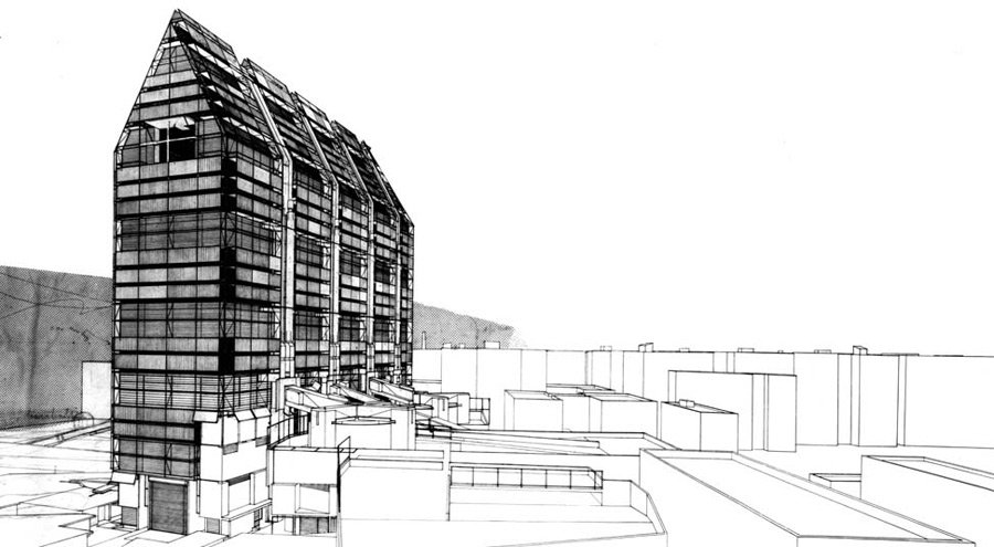 A critical perspective and sense of irony prevents the contemporary architect from fully enjoying such heroic positivism, though. These schemes acknowledge that reality, and admit their presence outside the strictest accounting of positivistic evolutionary histories. Each scheme elaborates its critique in a single, simple departure from conformity to the requisite or precise assimilation to the necessary. Each scheme spoils its own implicit bid for perfection. By this departure, though, the project is fit more “perfectly” to the site. The intention betrays a reliance on the logic of supplementarity, which suggests that, by working to fit themselves more completely into the site, they demonstrate their own lack of completeness. Yet, at the same time, while the overtness of this act makes it critical, its intention keeps it positive.